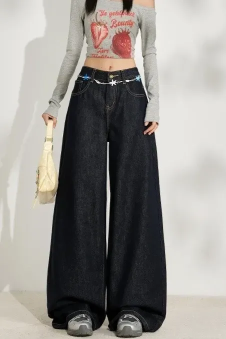Dark Blue Wide Leg Mid Rise Jeans