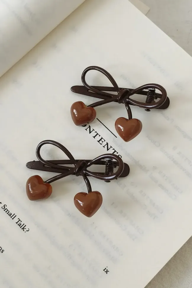 Dark Brown Bow Set Of 2 Hair Clips