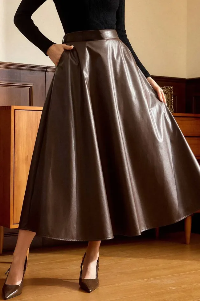 Dark Brown High Rise Pu Maxi Skirt