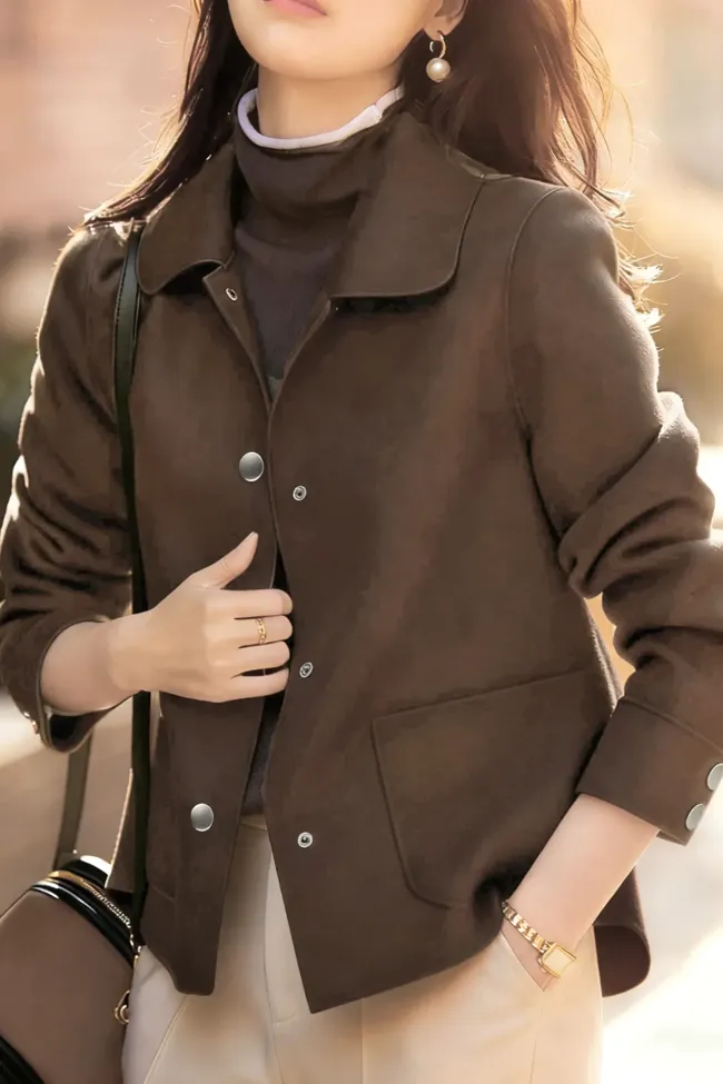 Dark Brown Solid Lapel Collar Jacket