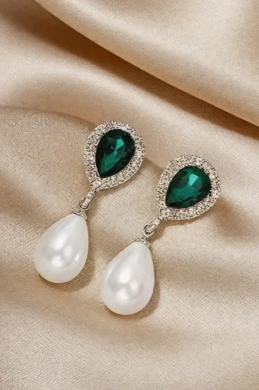 Dark Green Pearl Drop Earrings