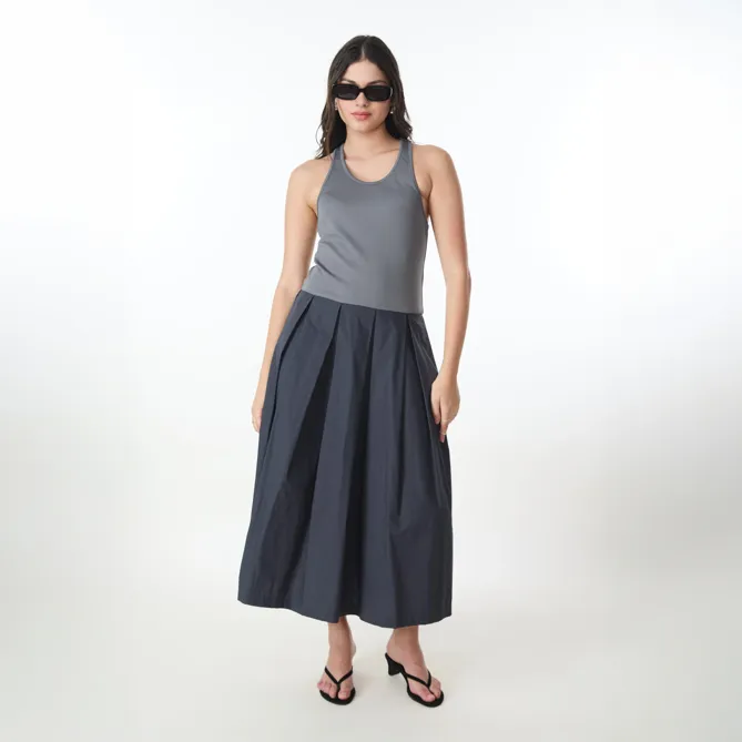 Dark Grey Colorblock Scoop Neck Dress