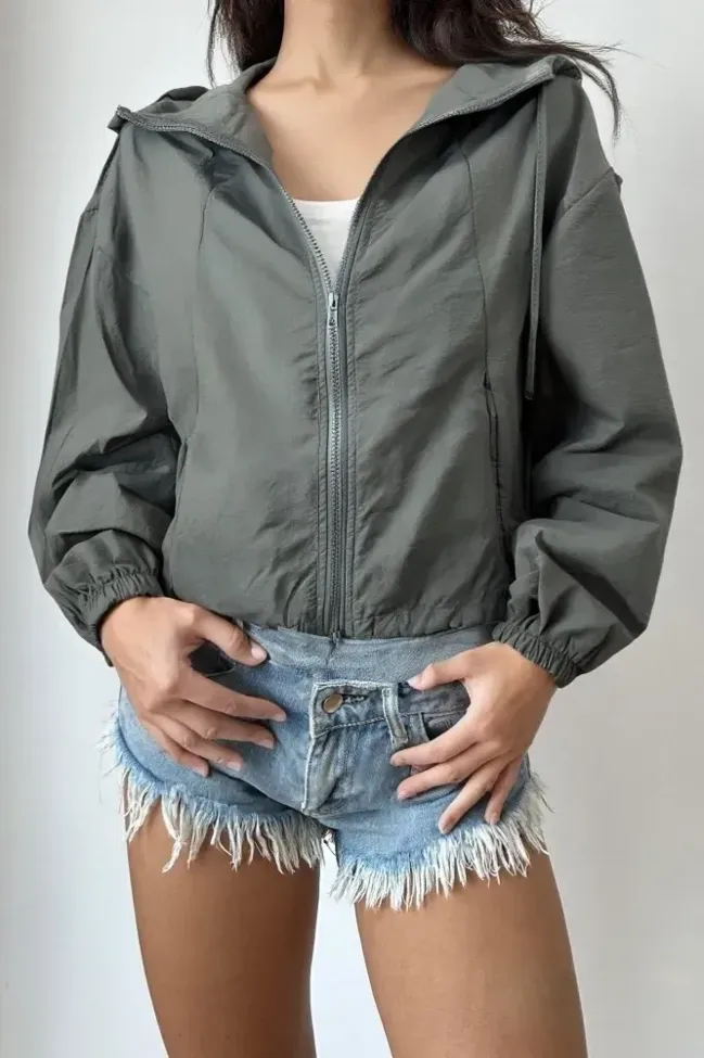 Dark Grey Crop Windcheater Jacket