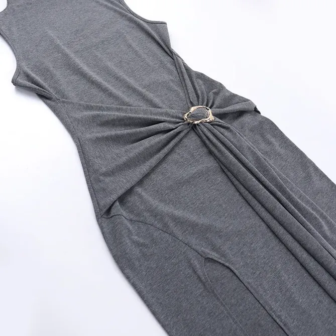 Dark Grey Mock Neck Waist Tie Up Maxi Dress
