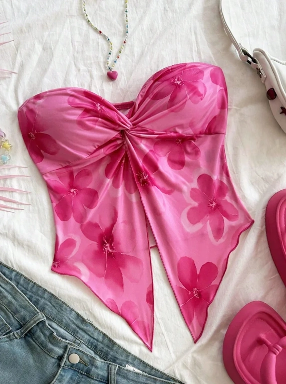 Dark Pink Floral High Low Top