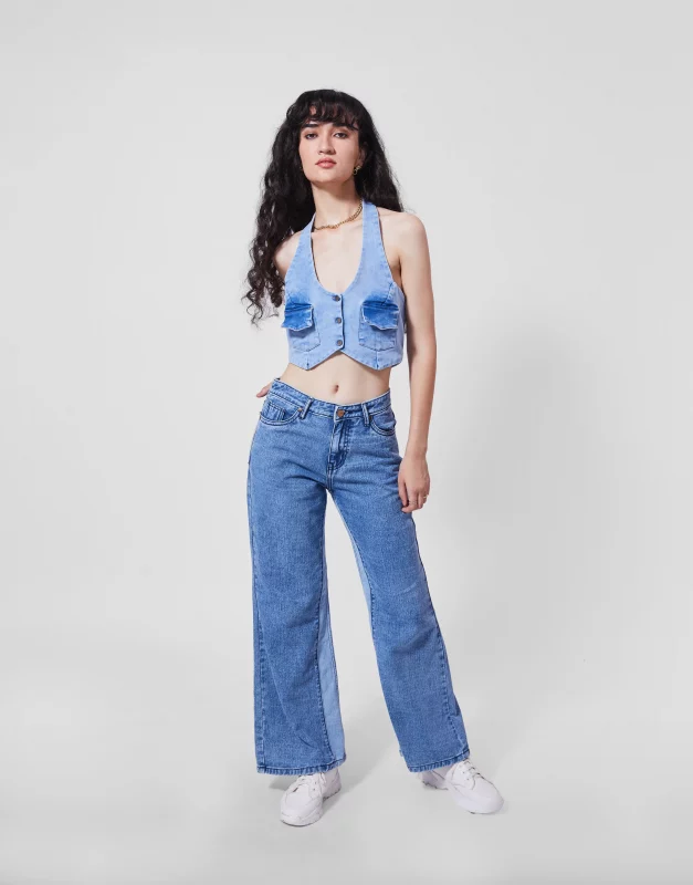 Denim Halter Neck Waistcoat And Jeans Set