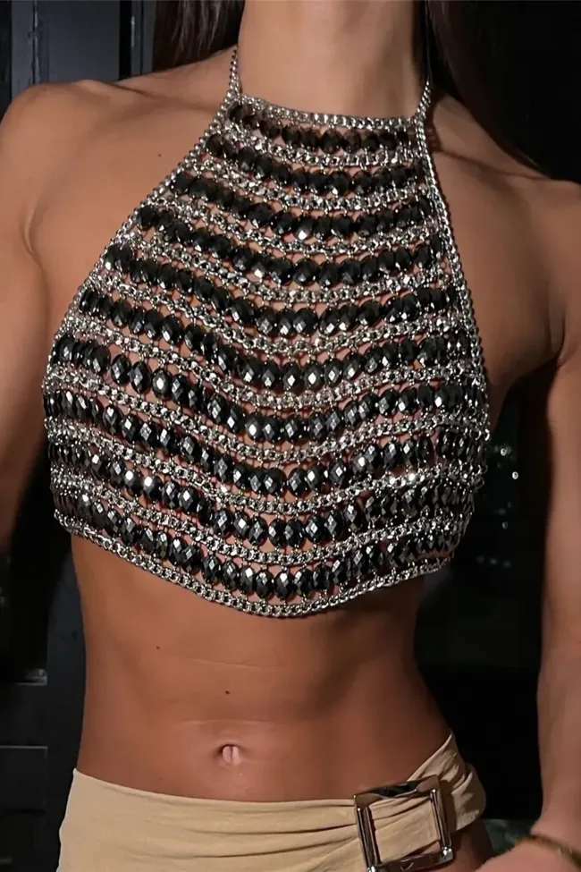 Embellished Halter Neck Body Chain Top
