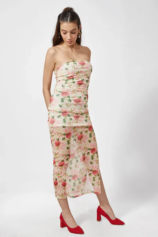 Floral Printed Sheer Slit Dress