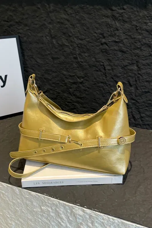 Gold Solid Pu Shoulder Bag