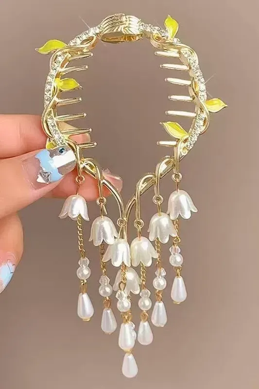 Golden Floral Hanging Hair Clip