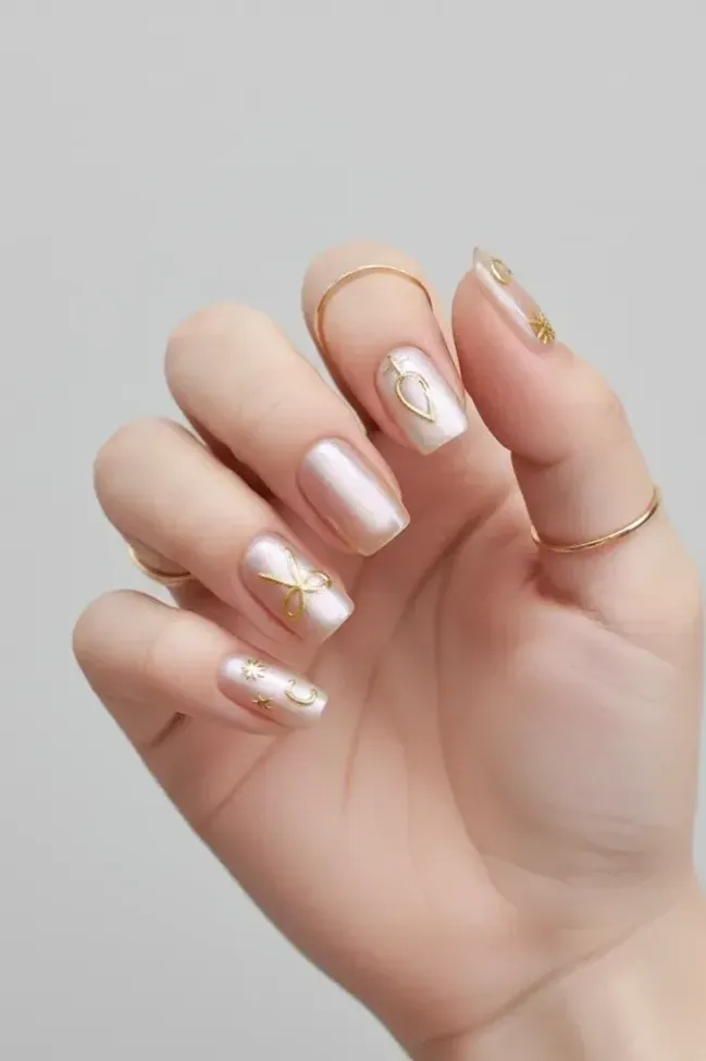 Golden Printed Press On Nails