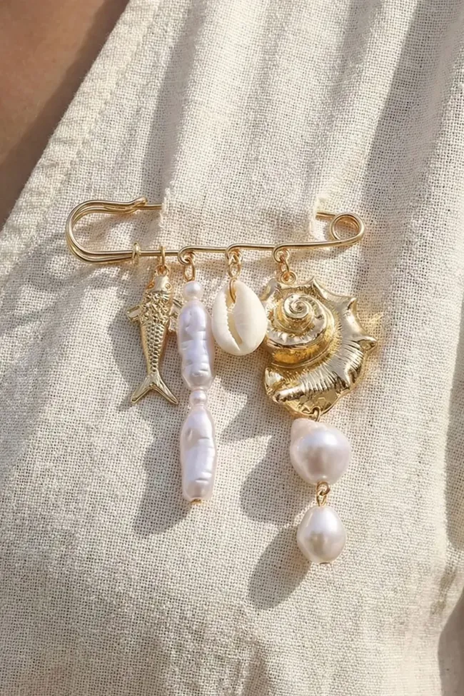 Golden Shell Charm Brooch