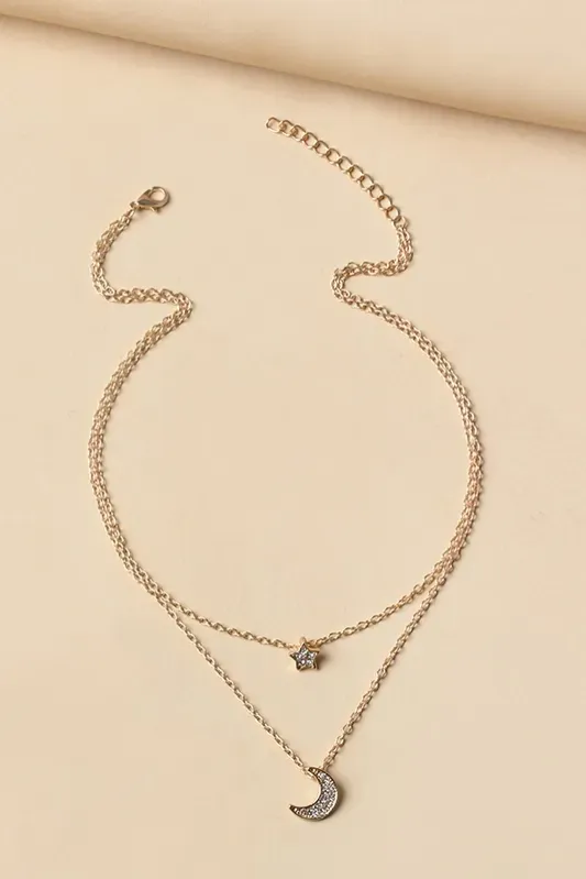 Golden Star And Moon Layered Necklace