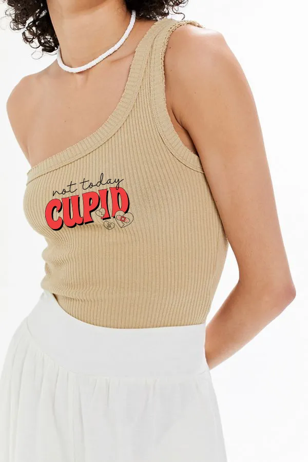 Graphic Printed One Shoulder Ribbed Tank Top