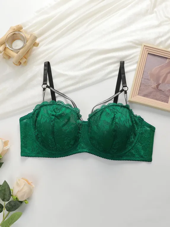 Green Lace Sweetheart Neck Bra