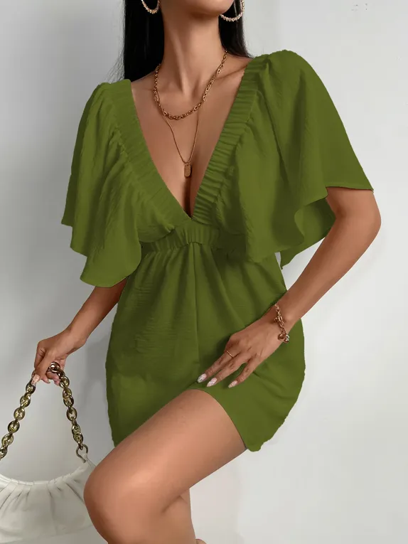 Green Plunging Neck Gathered Playsuit