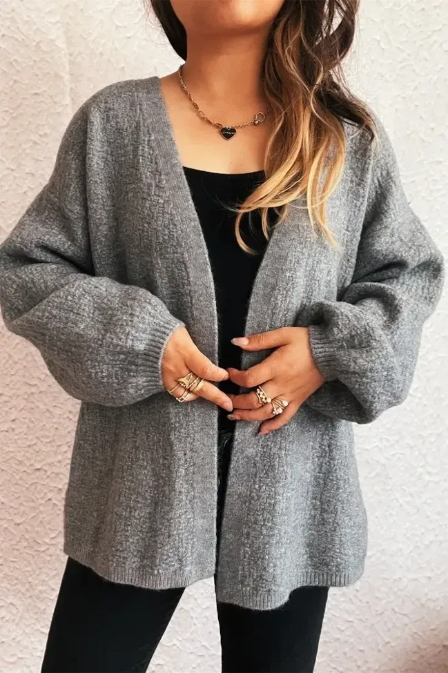 Grey V-Neck Open Front Cardigan