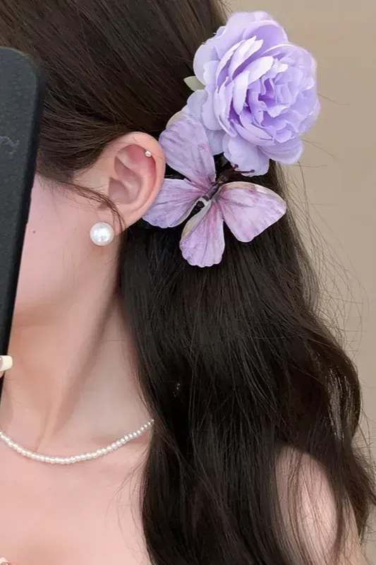 Lavender Butterfly Floral Hair Clip