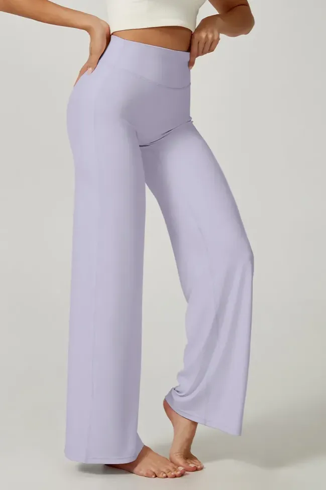 Lavender Solid High Rise Pants
