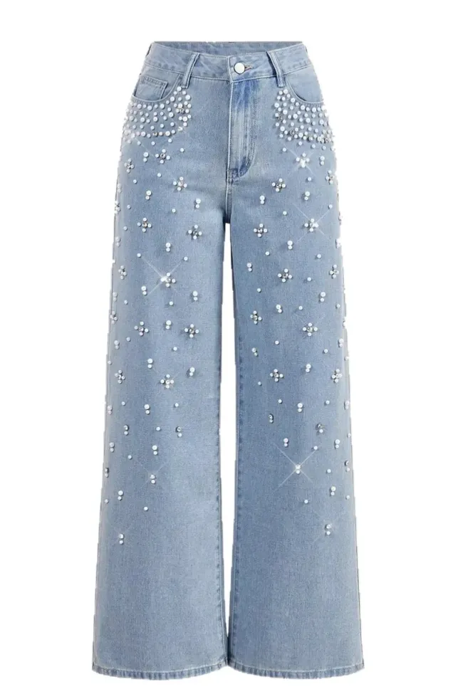 Light Blue Embellished Wide Leg Jeans