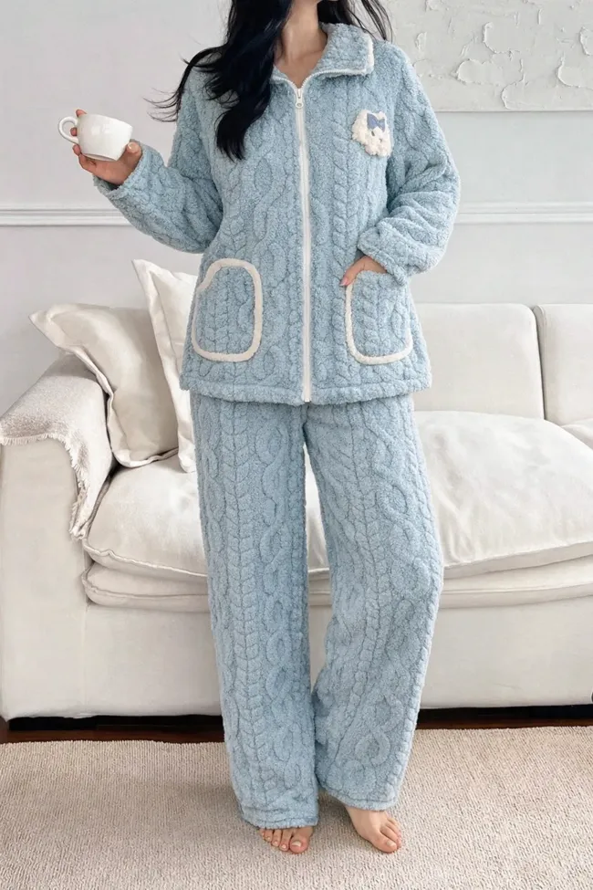 Light Blue Zip-Up High Neck Co-Ord Set