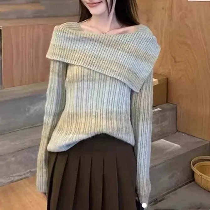 Light Grey Knitted Asymmetric Neck Sweater