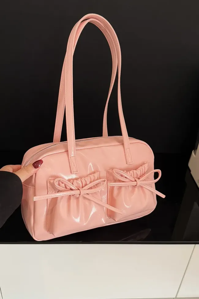 Light Pink Bow Pu Shoulder Bag
