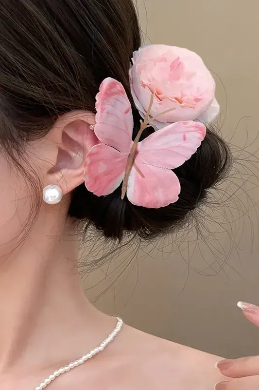 Light Pink Butterfly Floral Hair Clip