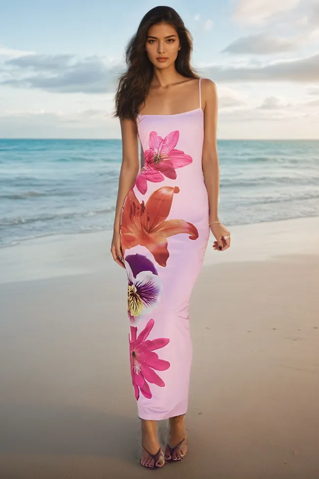 Light Pink Floral Bodycon Dress