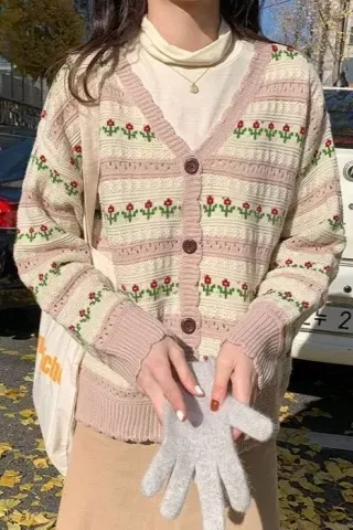 Light Pink Floral Buttoned Cardigan