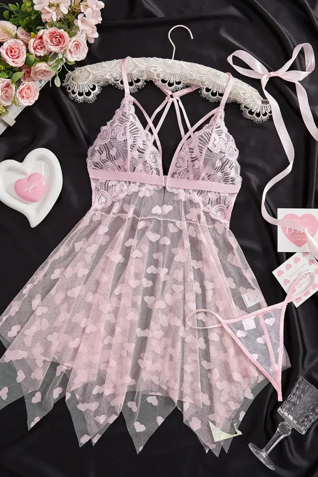 Light Pink Lace Heart Babydoll