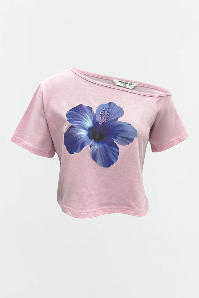 Light Pink Off Shoulder Crop T-Shirt