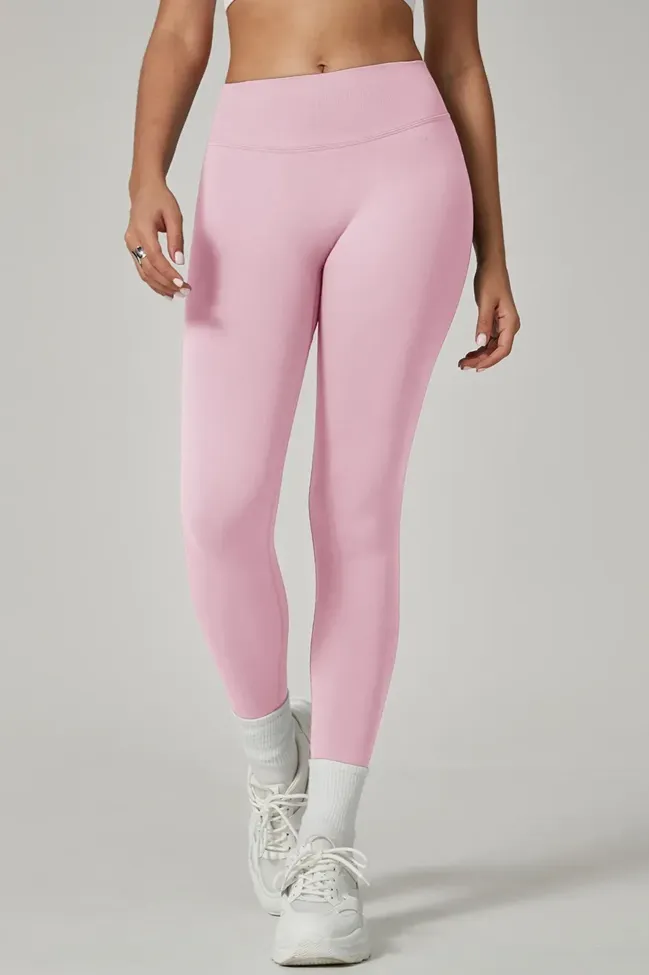 Light Pink Solid High Rise Leggings