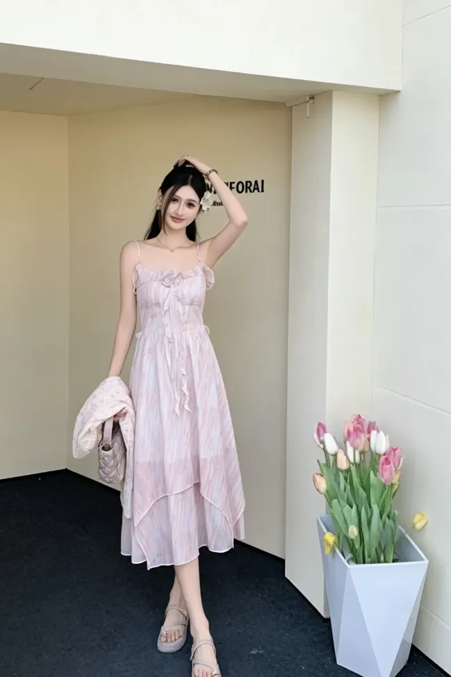 Light Pink Sweetheart Tiered Midi Dress