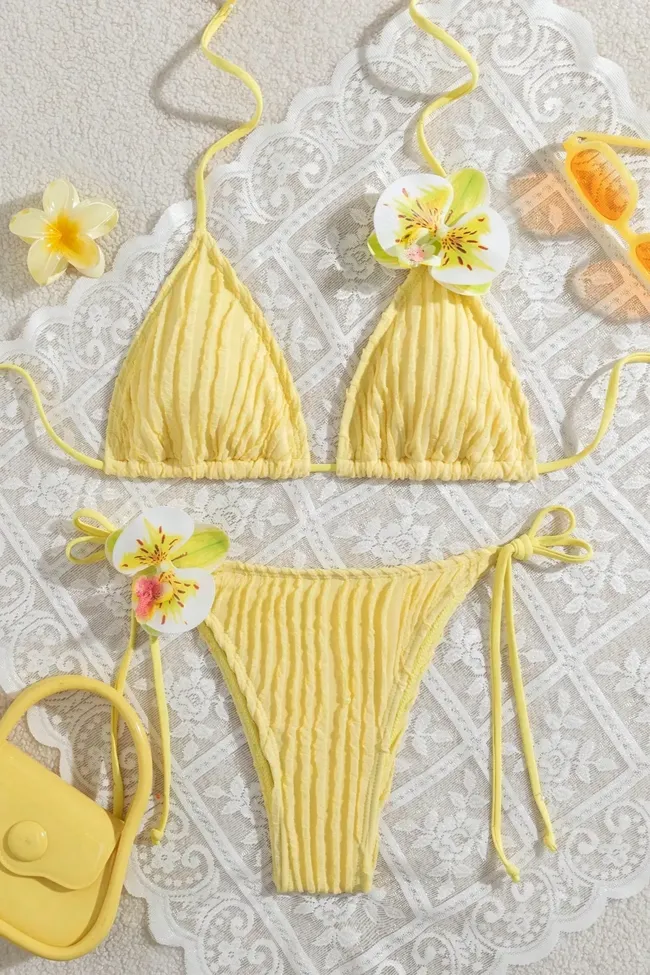 Light Yellow Halter Tie-Up Swimwear Set