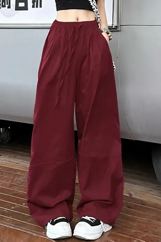 Maroon Mid Rise Loose Pants