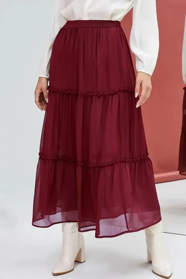 Maroon Ruffle Tiered Maxi Skirt