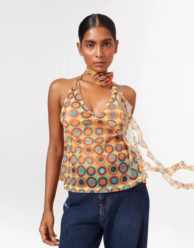 Mesh Printed Sleeveless Top