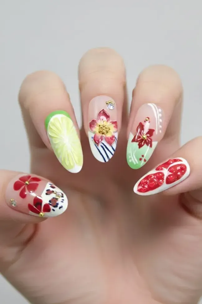 Multi-Color Fruity Press On Nails