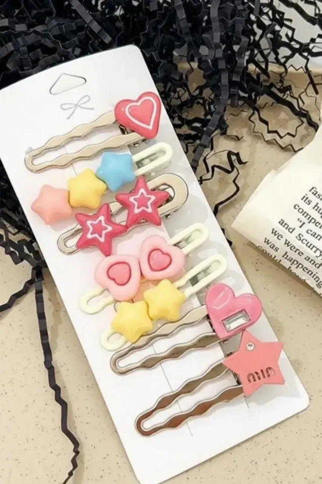 Multi-Color Heart Set Of 7 Hair Clips