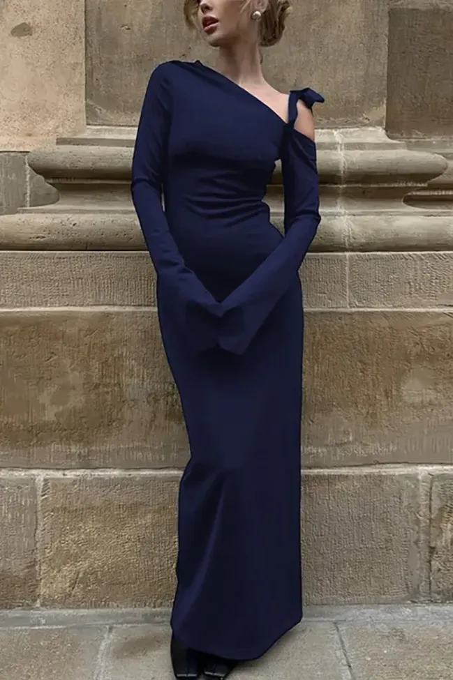 Navy Blue One-Shoulder Maxi Dress