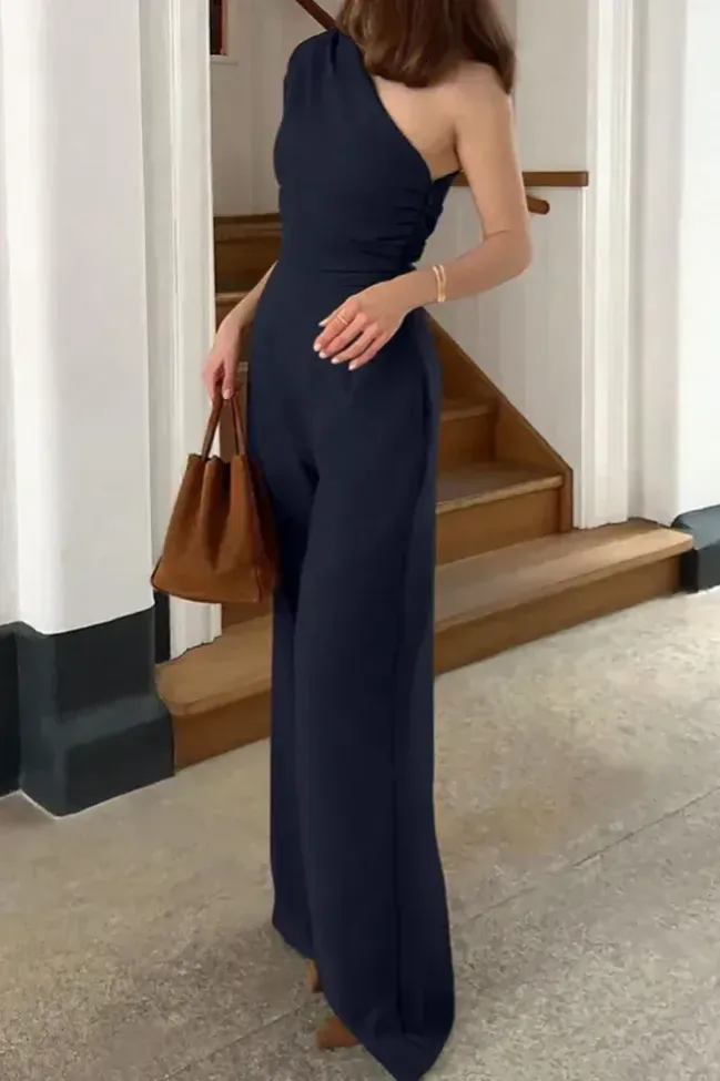 Navy Solid One-Shoulder Jumpsuit