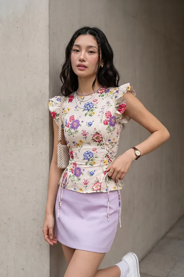 Off White Floral Floral Crew Neck Top