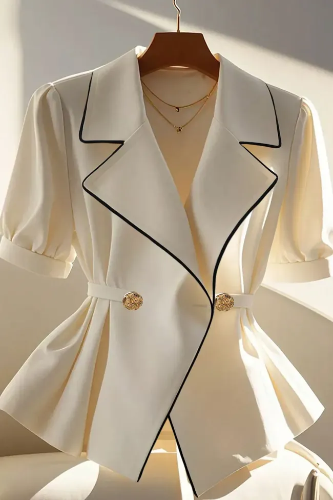 Off White Lapel Collar Blazer