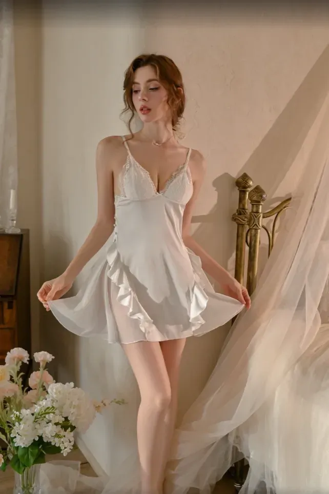Off White Ruffled V-Neck Slip Dress