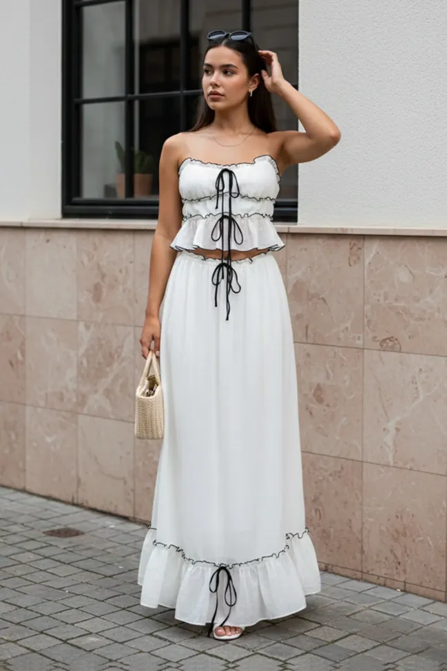 Off White Ruffles Detail Coord Set
