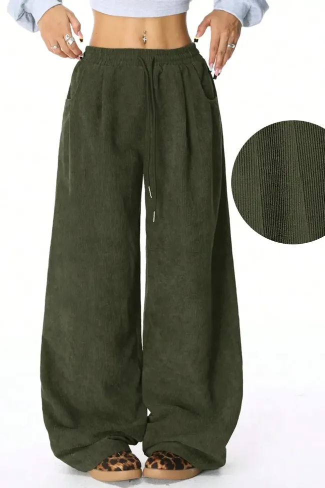 Olive Solid Mid Rise Trackpants