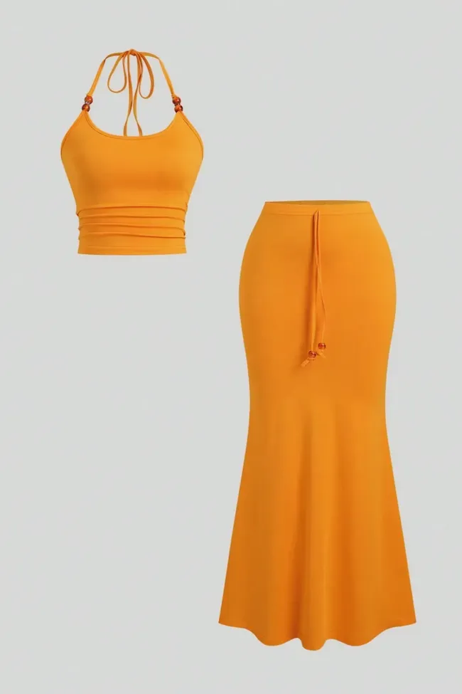 Orange Solid Halter Neck Co-Ord Set