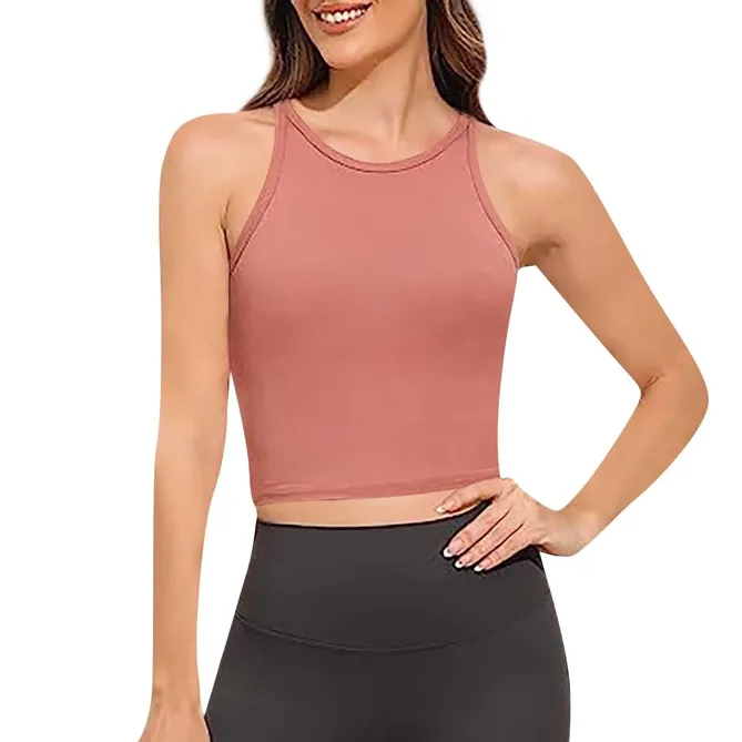 Peach Solid Crop Tank Top