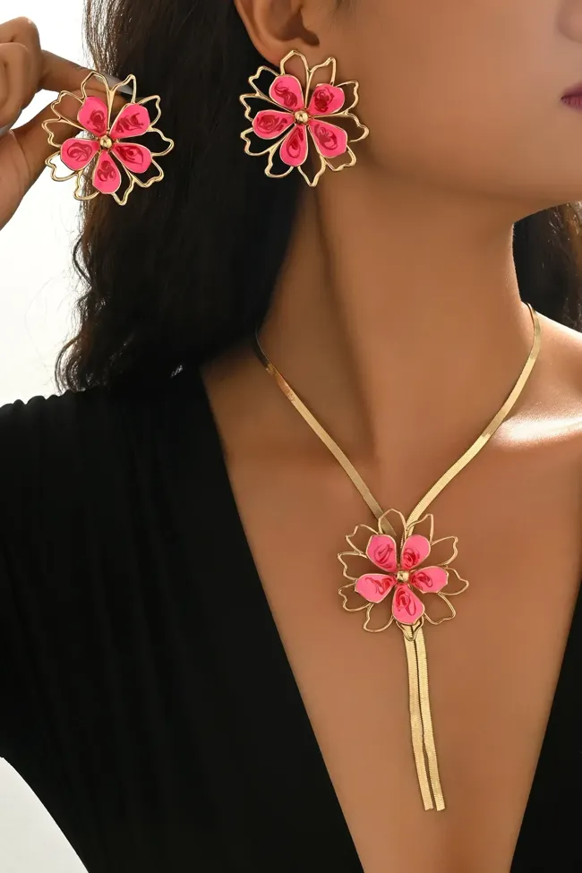 Pink Amethyst Floral Jewellery Set